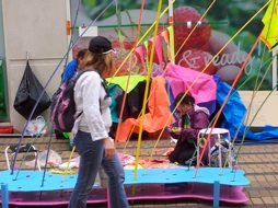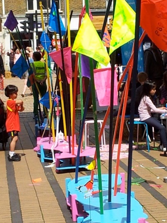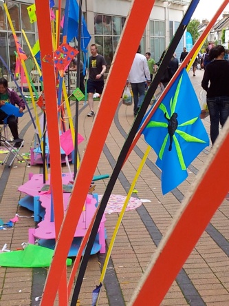A one day event to celebrate the Olympic year, inviting people to create and to decorate their own flags and kites. These were then attached onto long poles of the colour of their choice that the participants could fix to stands specifically designed for the occasion. These flags and kites created a colourful display that interacted with the wind and attracted other people’s attention.