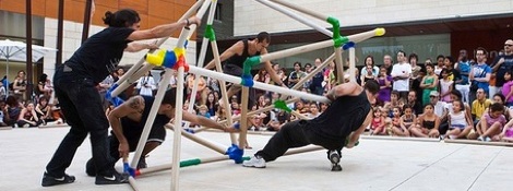 •In Zaragoza, Spain, the final outcome was an 18min choreography performed in front of an audience as part of the international dance festival “Trayectos”. The performance incorporated architectural structures created by some of the children involved in the project. These elements were actively engaged with by performers and audiences alike. Important parts of the soundtrack for the piece were the songs created by the children at Kanes Hill