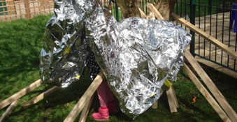 •At Kanes Hill/Portsmouth the final outcome took the shape of a number of visual arts displays, an architectural installation and a number of films and songs. All of them were part of an exhibition first at the Lighthouse and then at Aspex Gallery. Some of the songs created by the children became the soundtrack for parts of the performance in Spain. It could be worth mentioning that our exhibition inspired the children of one of the other groups taking part in the Creative World project to create their own den and this made us very happy.