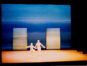 Chopin’s music for three “Pas de deux” that reflect the different stages of a relationship. Two light-boxes and a changing painted background illustrate this collaboration with internationally acclaimed choreographer Derek Deane